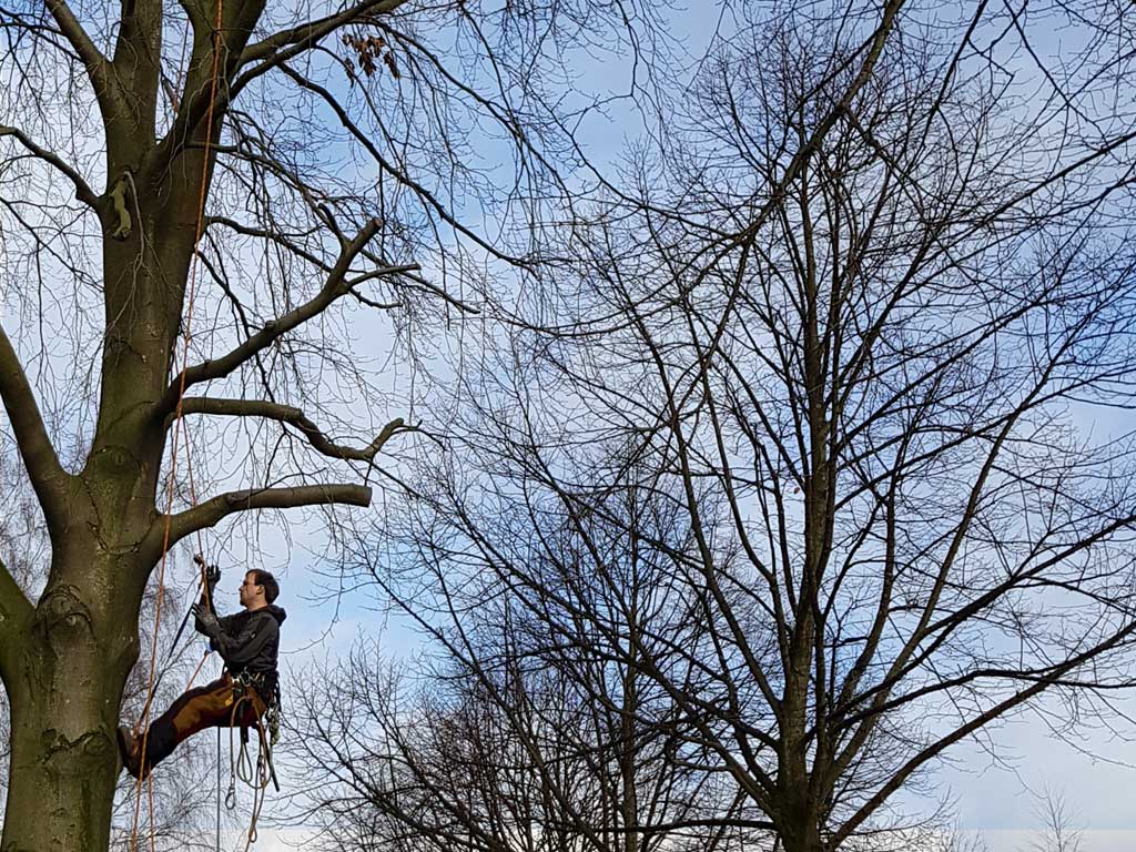 Professionelle Baumpflege mit Seilklettertechnik in Hamburg.